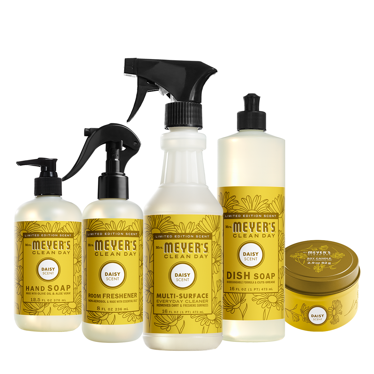 - Includes Hand Soap. Dish Soap. Multi-Surface Everyday Cleaner. Room Freshener. and Tin Candle.
