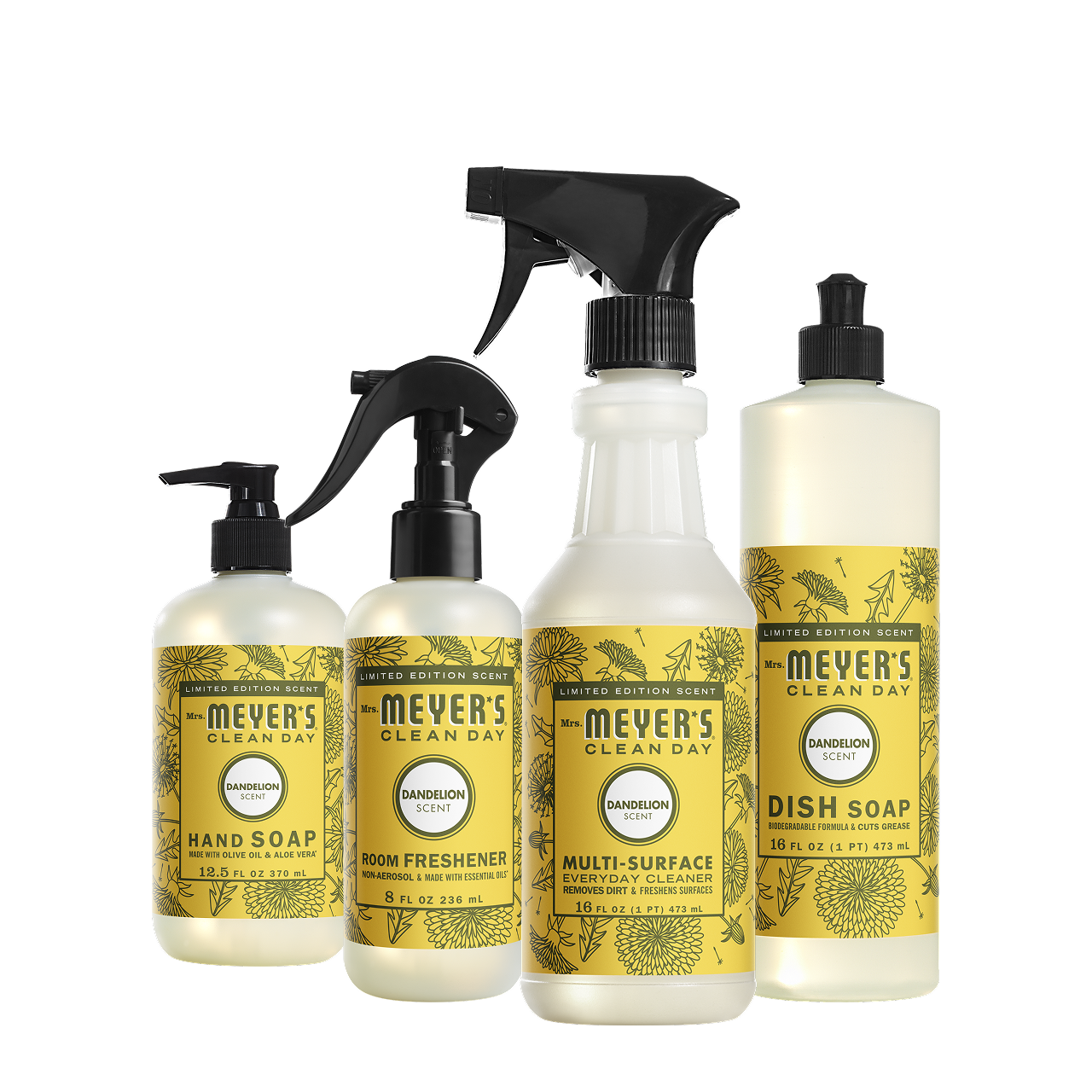 - Includes Hand Soap. Dish Soap. Multi-Surface Everyday Cleaner. and Room Freshener