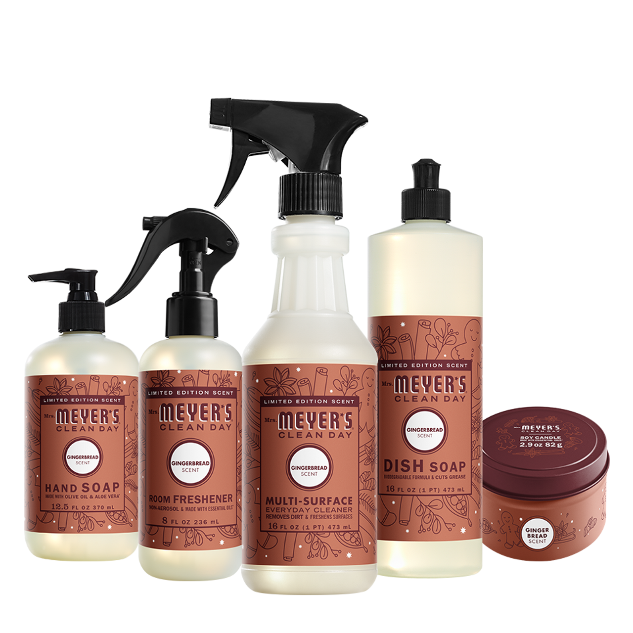 - Includes Hand Soap. Dish Soap. Multi-Surface Everyday Cleaner. Room Freshener. and Tin Candle.